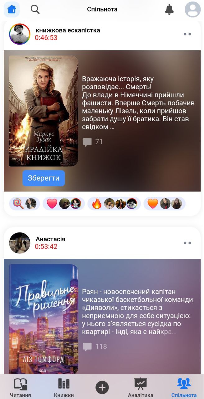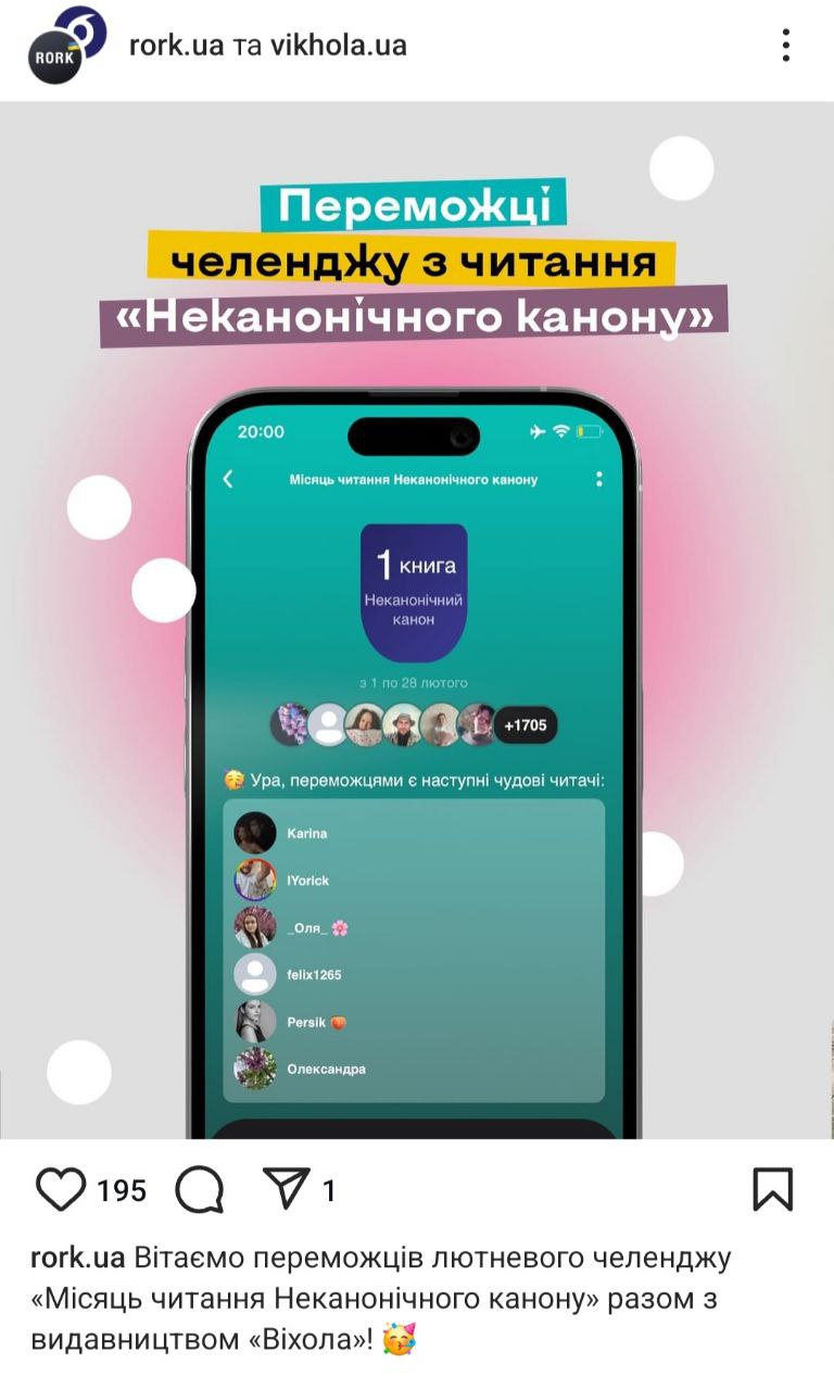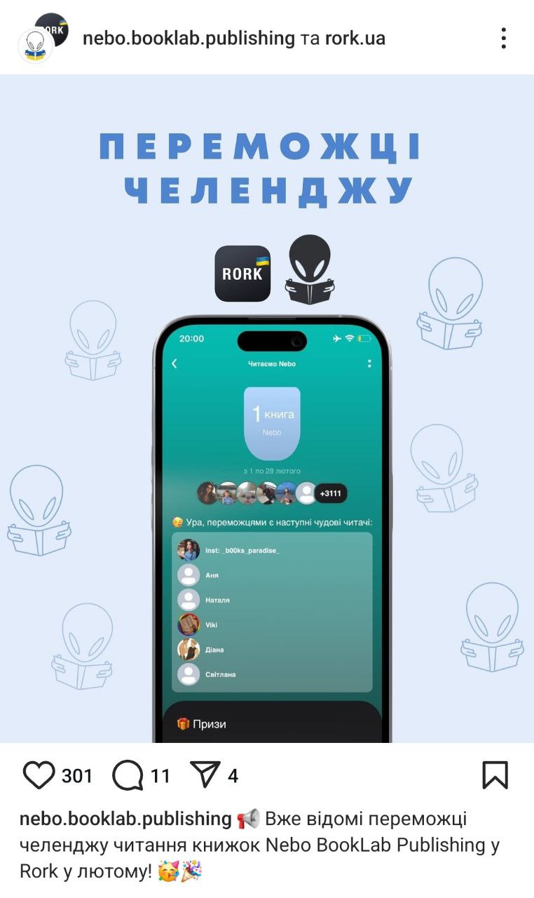 У Rork є можливість робити нотатки й зберігати цитати з твору, який ви читаєте. Також можна додавати книги у список запланованих і переглядати читацькі вподобання друзів. Додаток має спільноту: ви можете підписатись на однодумців. Цікава «родзинка» — челенджі з призами. Rork проводить їх регулярно та оголошує переможців на своїй інстаграм-сторінці. Читати й вигравати книги — чом не чудова можливість?